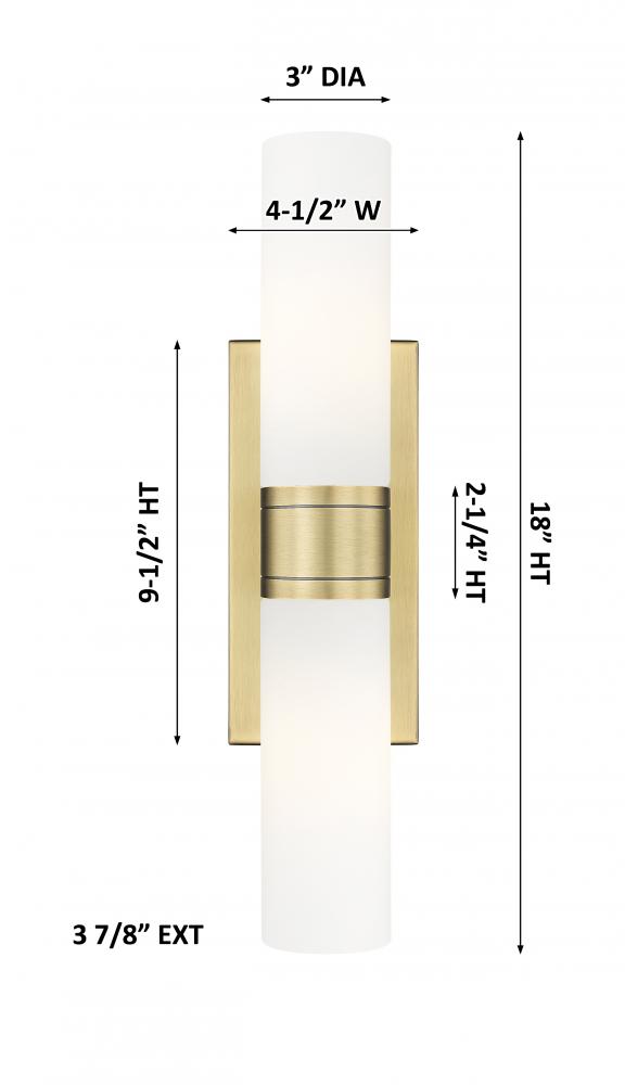 Boreas - 2 Light - 18 inch - Brushed Brass - White Shade - Bath Vanity Light