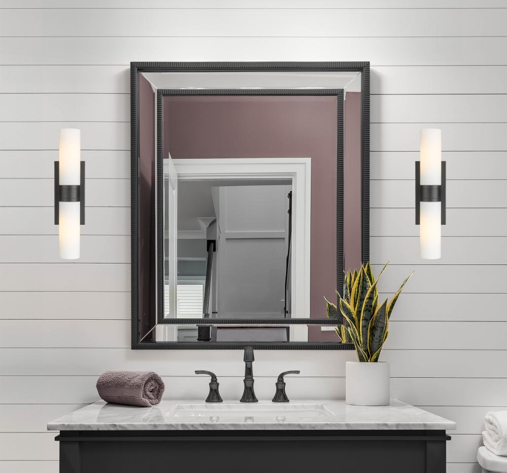 Boreas - 2 Light - 18 inch - Matte Black - White Shade - Bath Vanity Light