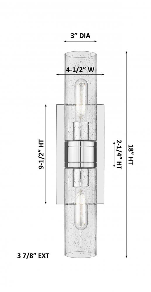Boreas - 2 Light - 18 inch - Polished Chrome - Seedy Shade - Bath Vanity Light