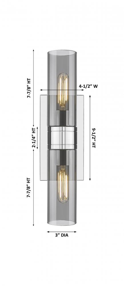Boreas - 2 Light - 18 inch - Polished Chrome - Light Smoke Shade - Bath Vanity Light