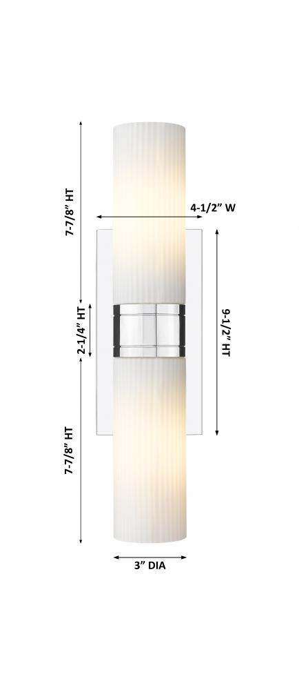 Boreas - 2 Light - 18 inch - Polished Chrome - Striped White Shade - Bath Vanity Light