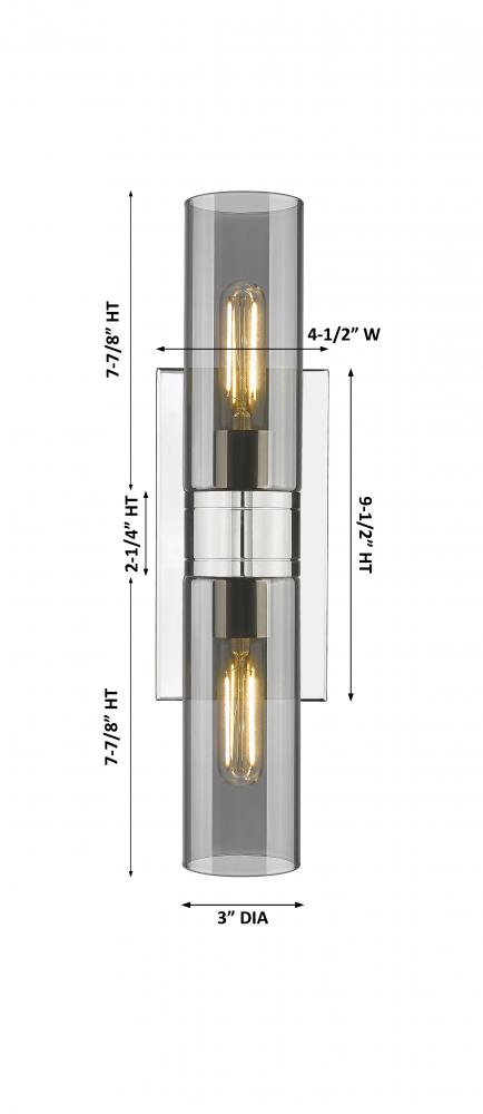 Boreas - 2 Light - 18 inch - Polished Nickel - Light Smoke Shade - Bath Vanity Light