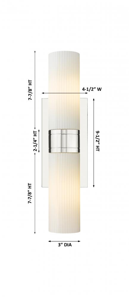 Boreas - 2 Light - 18 inch - Polished Nickel - Striped White Shade - Bath Vanity Light