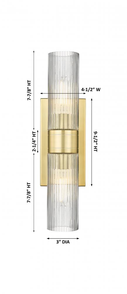 Boreas - 2 Light - 18 inch - Satin Gold - Striped Clear Shade - Bath Vanity Light