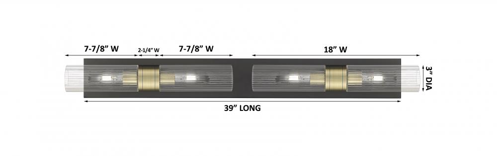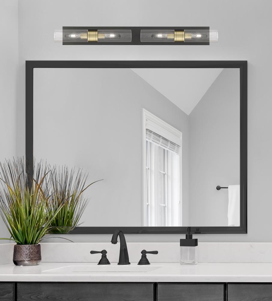 Boreas - 4 Light - 39 inch - Black Antique Brass - Striped Clear Shade - Bath Vanity Light