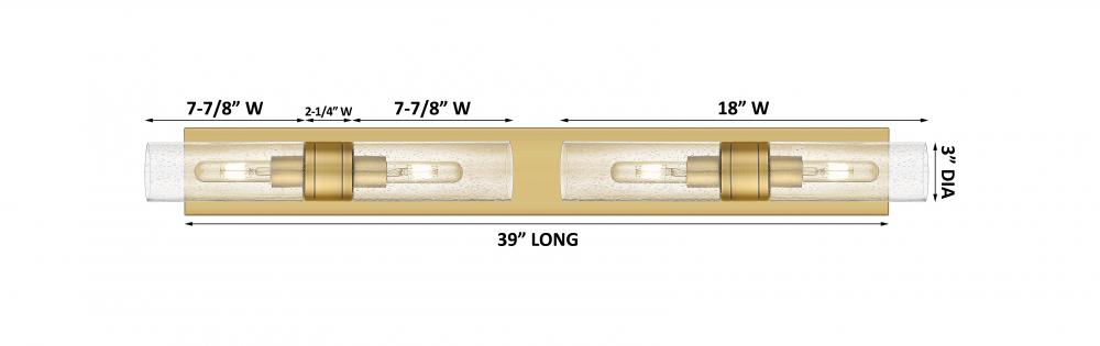 Boreas - 4 Light - 39 inch - Brushed Brass - Seedy Shade - Bath Vanity Light