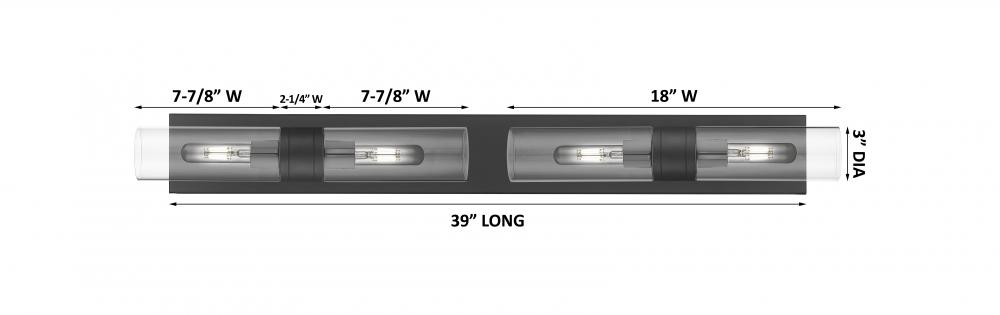 Boreas - 4 Light - 39 inch - Matte Black - Clear Shade - Bath Vanity Light