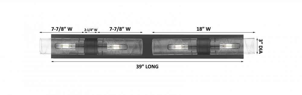 Boreas - 4 Light - 39 inch - Matte Black - Deco Swirl Shade - Bath Vanity Light