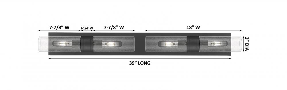 Boreas - 4 Light - 39 inch - Matte Black - Seedy Shade - Bath Vanity Light
