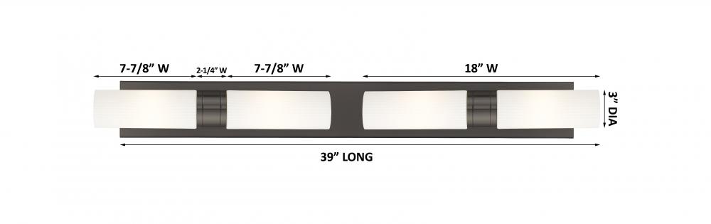 Boreas - 4 Light - 39 inch - Oil Rubbed Bronze - Striped White Shade - Bath Vanity Light