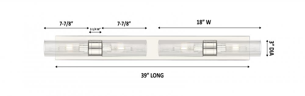 Boreas - 4 Light - 39 inch - Polished Nickel - Striped Clear Shade - Bath Vanity Light