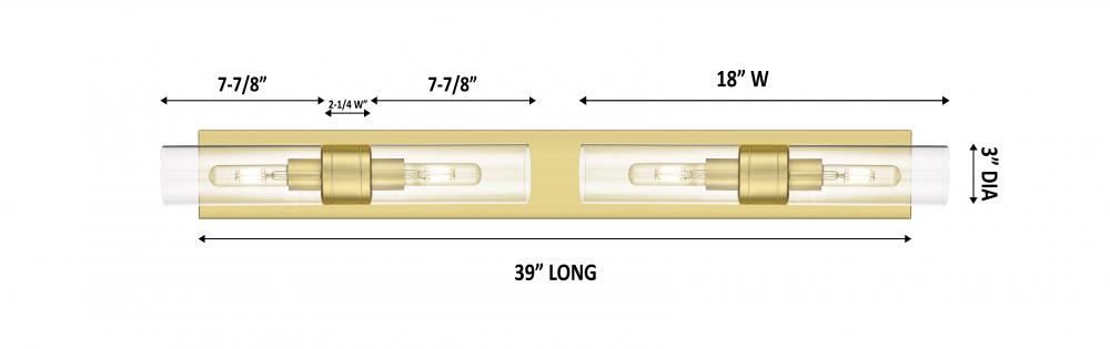 Boreas - 4 Light - 39 inch - Satin Gold - Clear Shade - Bath Vanity Light