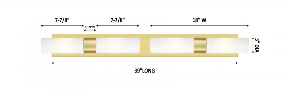 Boreas - 4 Light - 39 inch - Satin Gold - Striped White Shade - Bath Vanity Light