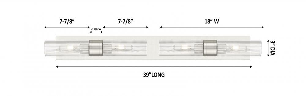 Boreas - 4 Light - 39 inch - Satin Nickel - Striped Clear Shade - Bath Vanity Light