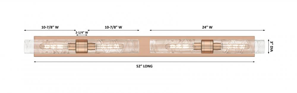 Boreas - 4 Light - 51 inch - Antique Copper - Deco Swirl Shade - Bath Vanity Light