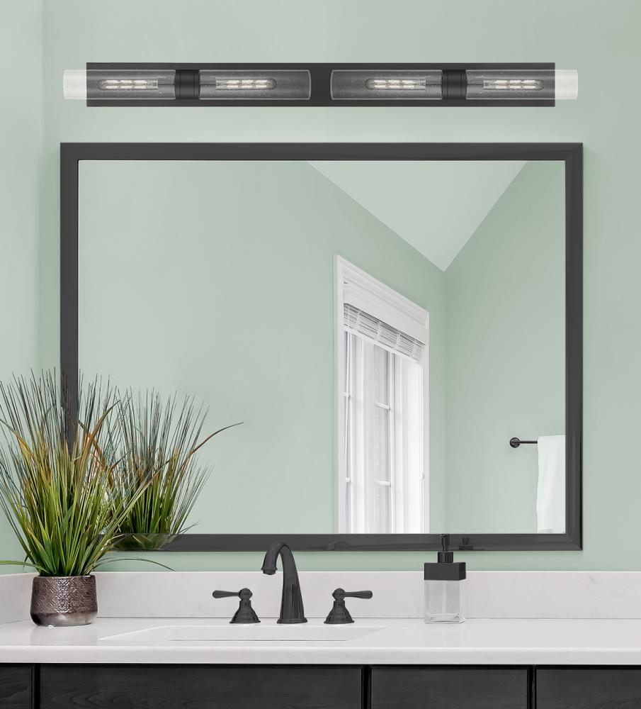 Boreas - 4 Light - 51 inch - Matte Black - Seedy Shade - Bath Vanity Light