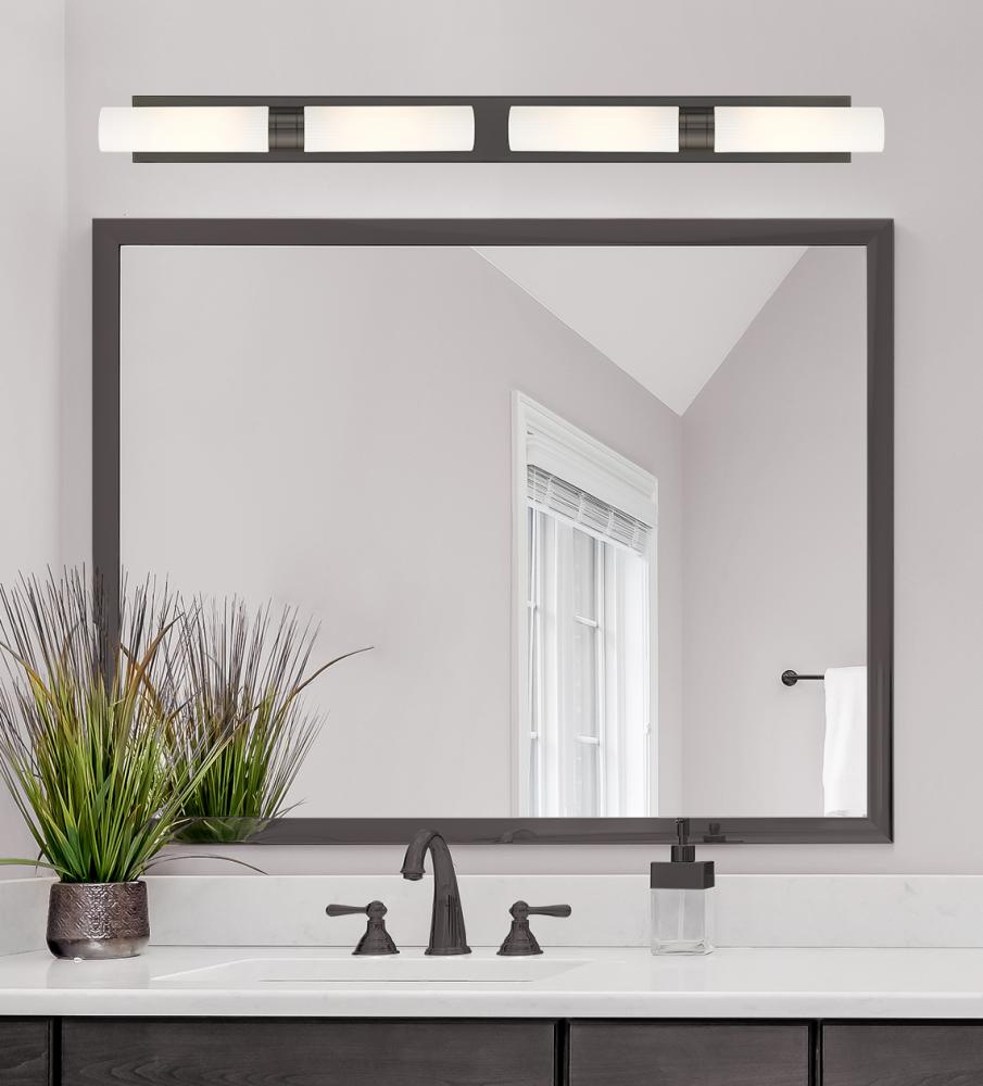 Boreas - 4 Light - 51 inch - Oil Rubbed Bronze - Striped White Shade - Bath Vanity Light