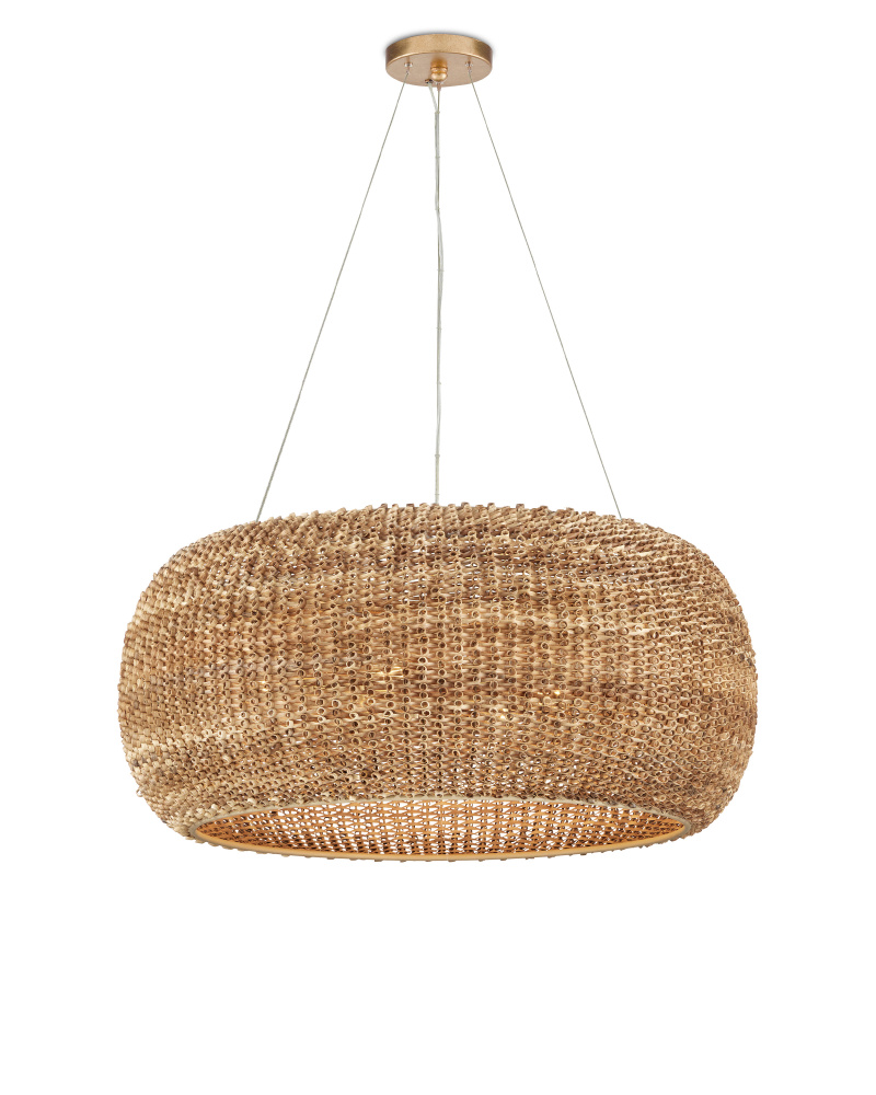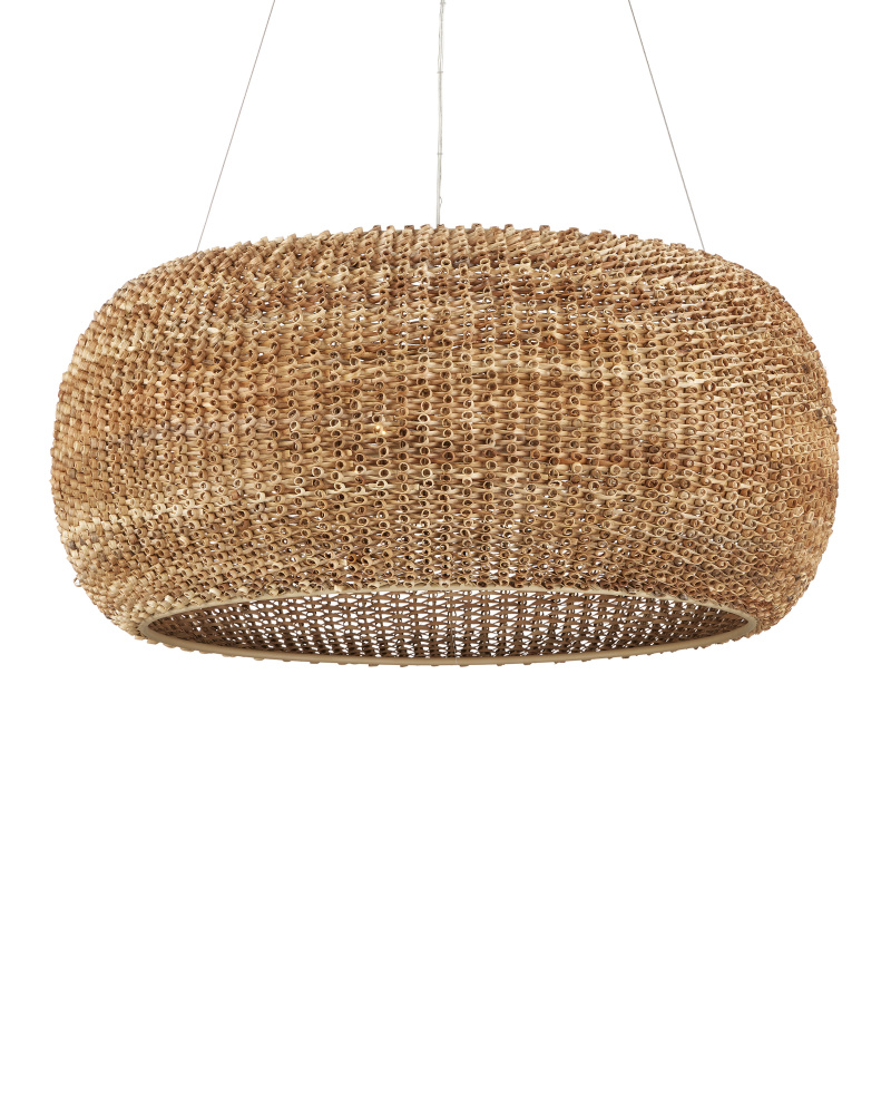 Made from a process that is similar to quilling with paper, the Boucle Chandelier is fashioned from looping natural rattan that has textural curls on the edges. This is a complex weave that is incredibly time-consuming to achieve with the level of consistency that creates a seamless shade. Wrapped around a wrought iron frame in a beige finish, the rattan chandelier will bring great warmth to a space. Adjustable from 36" to 158" with use of included chain/rod kit/cable. If your space calls for a longer drop, additional chain/rods/cable is available for purchase.