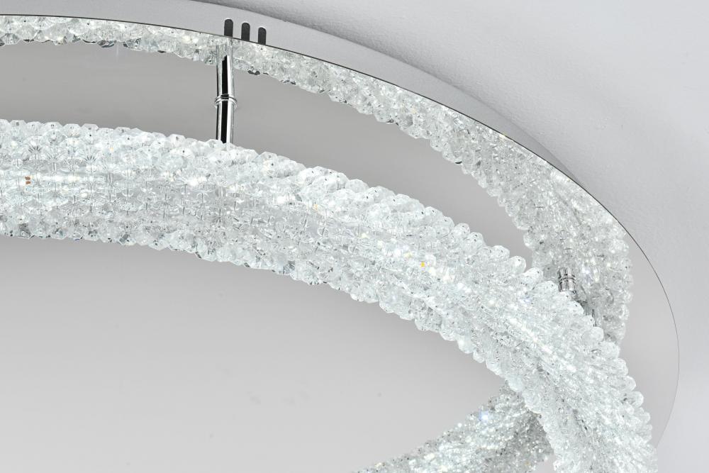 Elevate your space with this enchanting LED Flush Mount, featuring a captivating round crystal-adorned design for a touch of sophistication.
