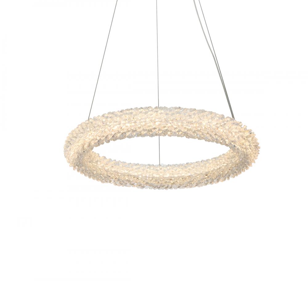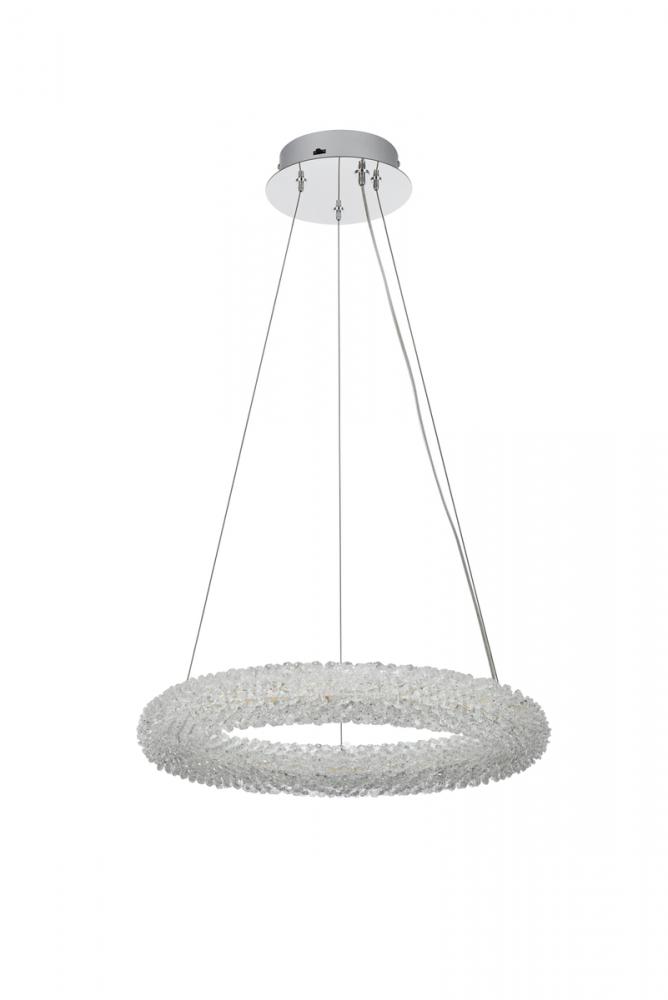 Elevate your space with the chic design of the 18-inch LED Chandelier, featuring a stunning round crystal-adorned chandelier and a 7-inch canopy for a touch of sophistication.