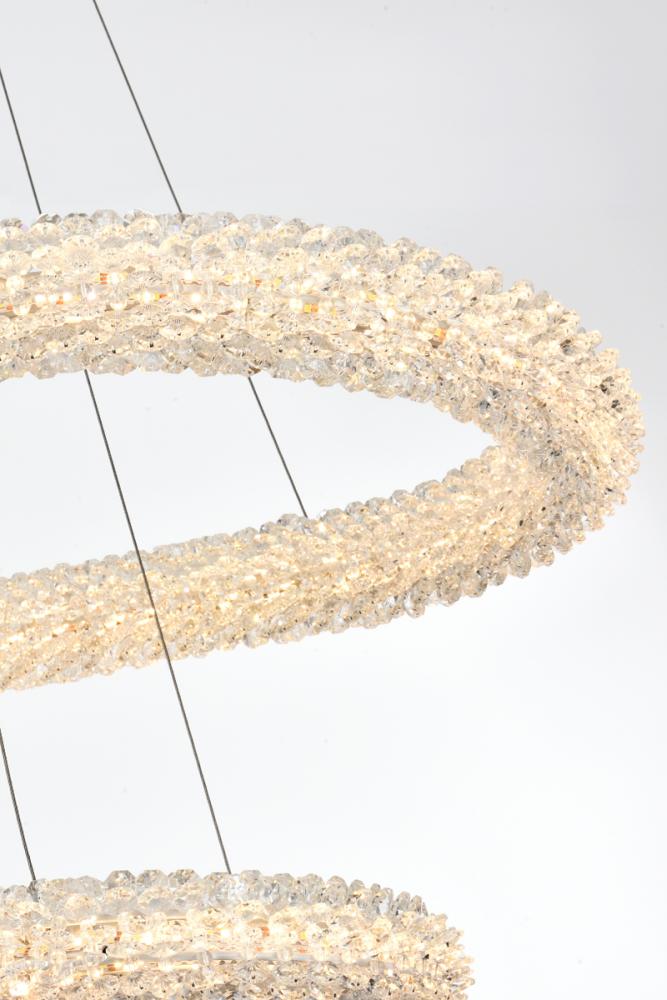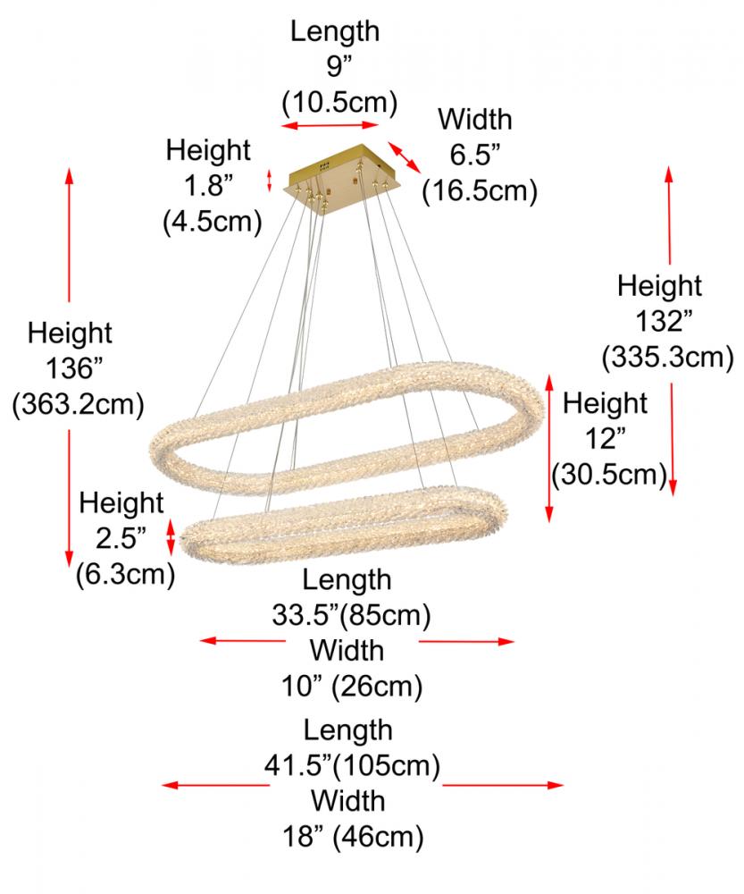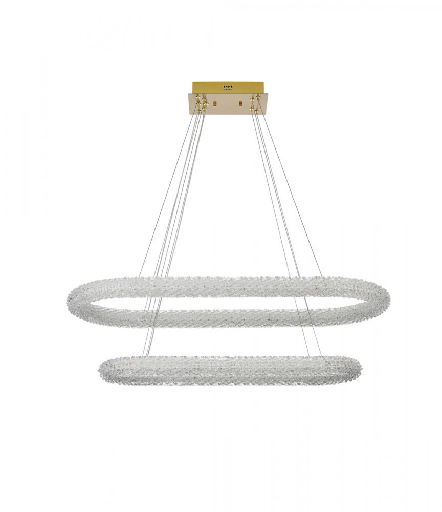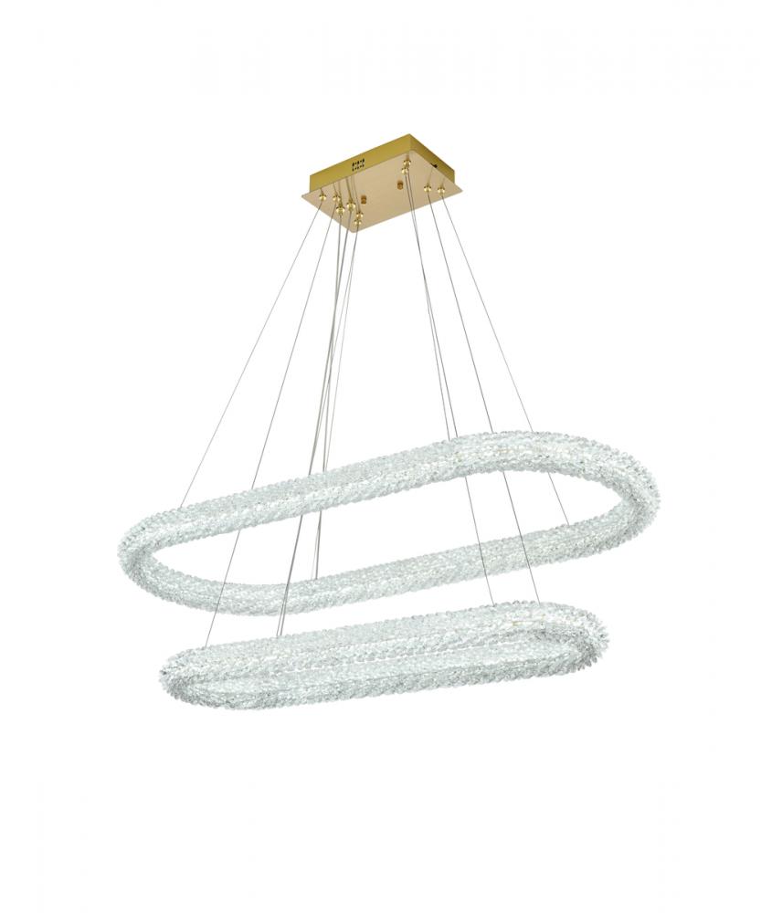 Illuminate your space with this enchanting 42 inch LED Tiered Chandelier, showcasing two captivating oblong rings adorned with crystals, adding a touch of sophistication.