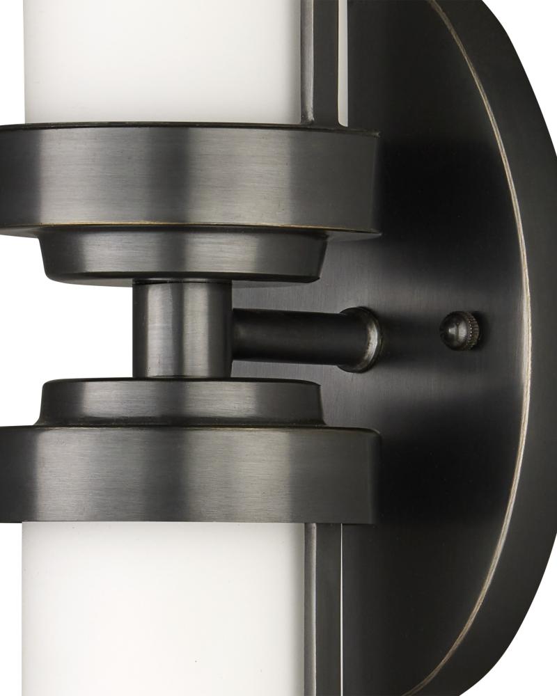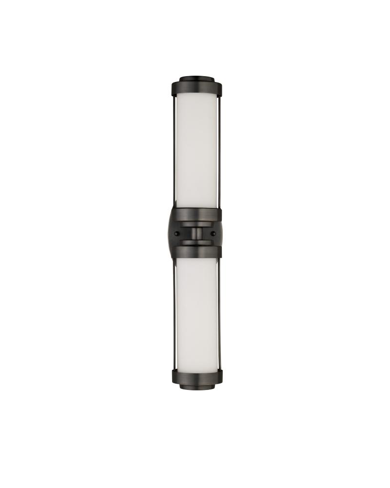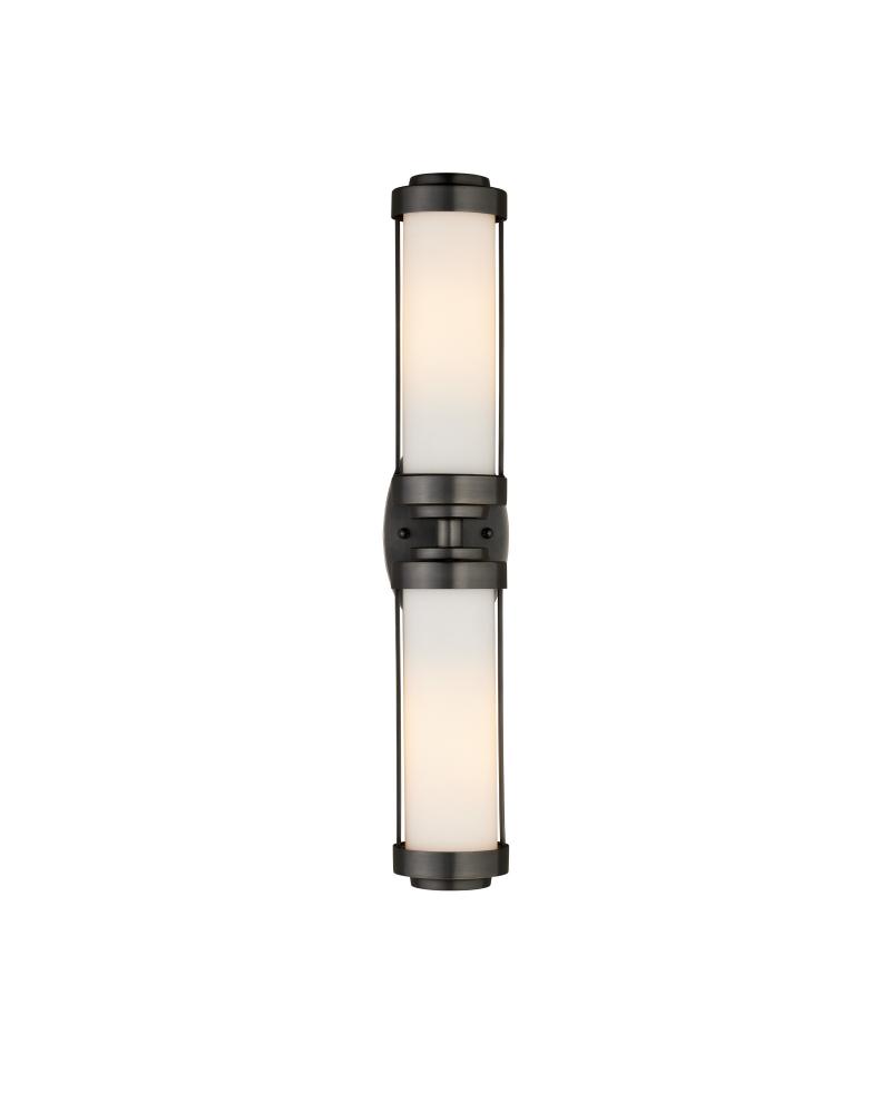 The Bowland Bronze Bath Wall Sconce features a contemporized hourglass shape designed with a fresh, modern feel. Inspired by an antique fixture, the time-honored profile is updated with sleek caps surrounding the opaque glass tubes at the top and bottom. The articulate center transition between the two elements further enhances this modernization. The metal on this sconce is in an oil-rubbed bronze finish.