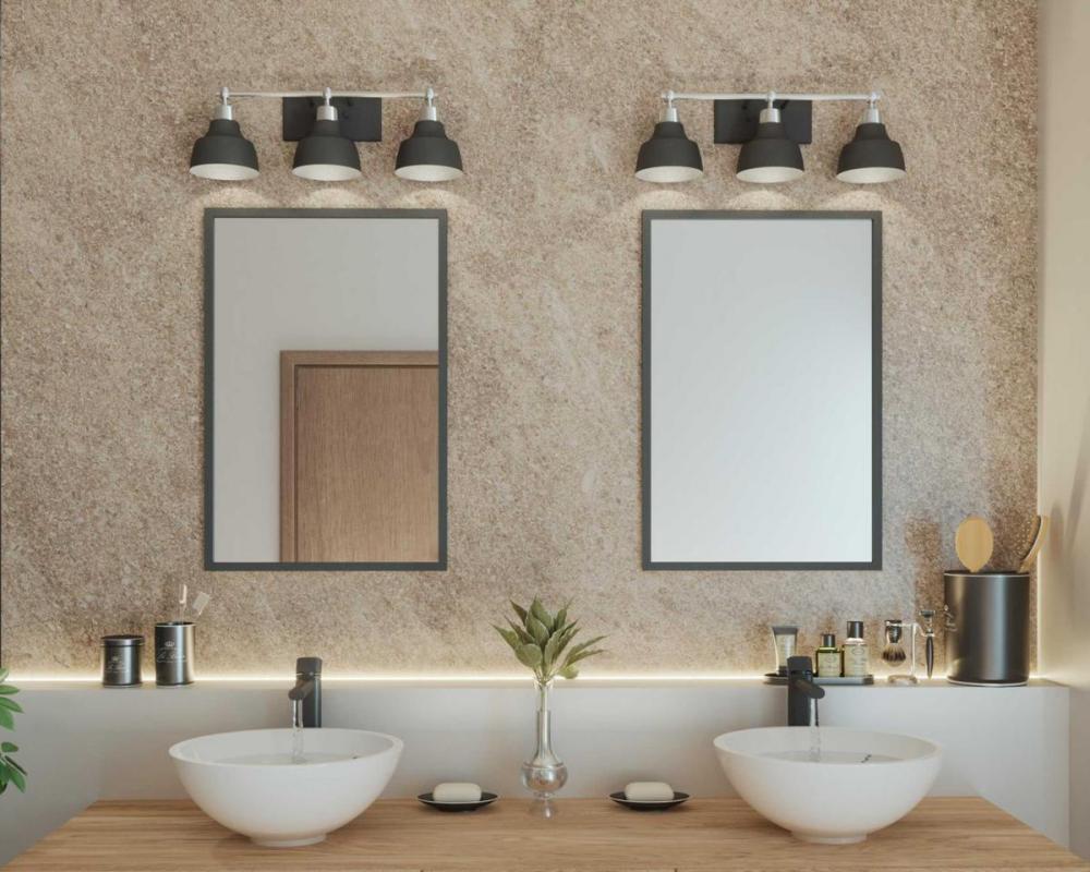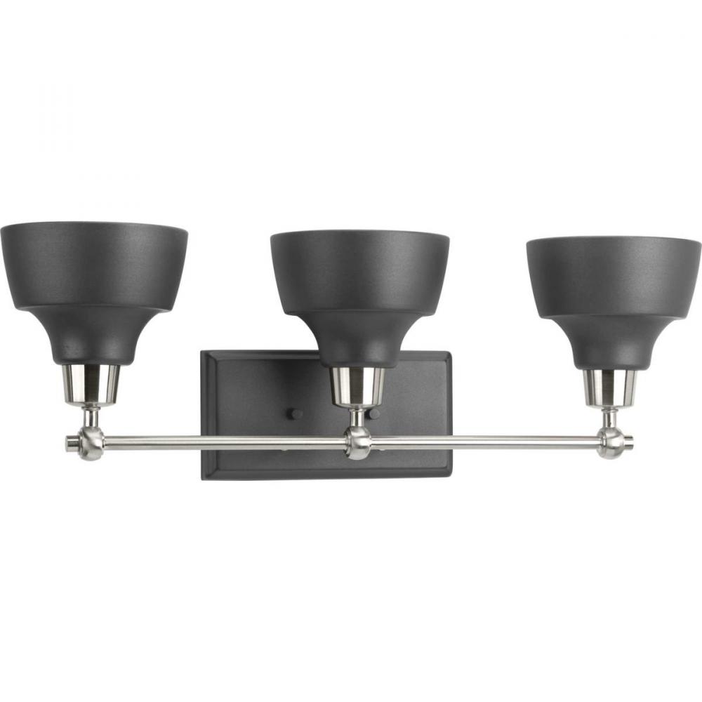 Ideal for a bathroom;Perfect for coastal, farmhouse, and urban industrial style settings;Graphite finish with beautiful brushed nickel accents;Gorgeous graphite metal shades;Mount the light fixture facing up or down;Use 3 medium base bulbs that are sold se