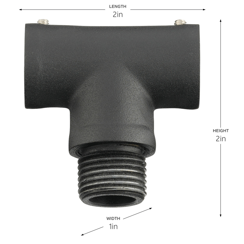 12V Brass Two Fixture Mount in Black Brass is ideal for creating clean, professional lighting installations that stand the test of time. Expertly crafted from solid, cast brass to deliver unmatched durability, even in the harshest weather conditions and coastal environments. Its sleek black finish provides an attractive alternative to traditional brass, ensuring seamless coordination with other fixtures. Designed for compatibility, it features a ½-inch male thread, making it easy to pair with any Kichler fixture that uses a half-inch threaded base as well as a "T" shape allows for multiple fixtures to be assembled together.