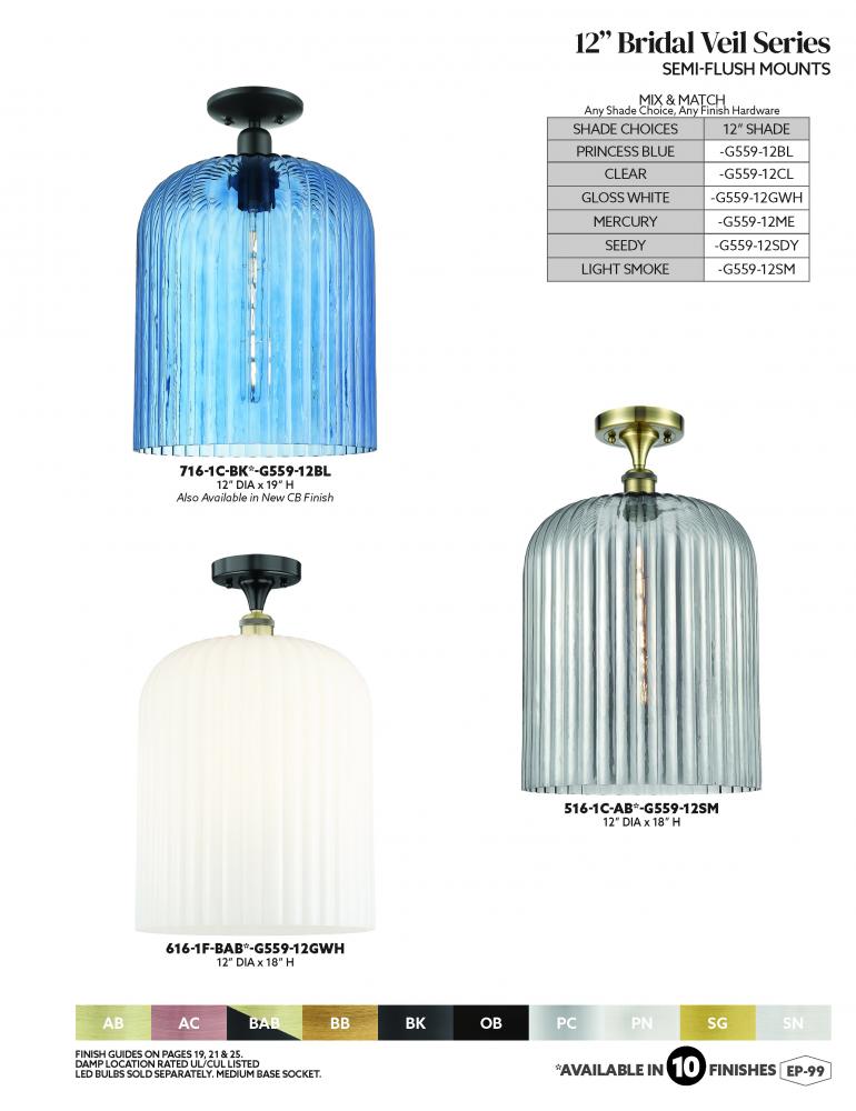 Bridal Veil - 1 Light - 5 inch - Antique Brass - Princess Blue Bridal Veil Shade - Semi-Flush Mount