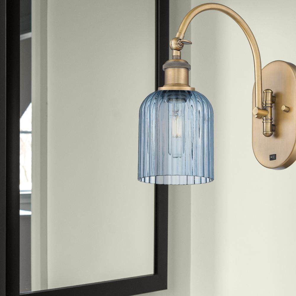 Bridal Veil - 1 Light - 5 inch - Brushed Brass - Princess Blue Shade - Adjustable Swing Arm