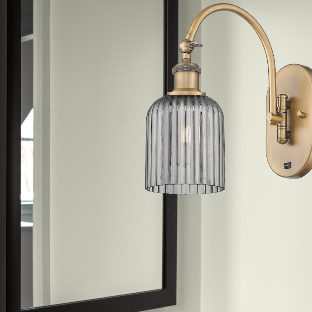 Bridal Veil - 1 Light - 5 inch - Brushed Brass - Light Smoke Shade - Adjustable Swing Arm