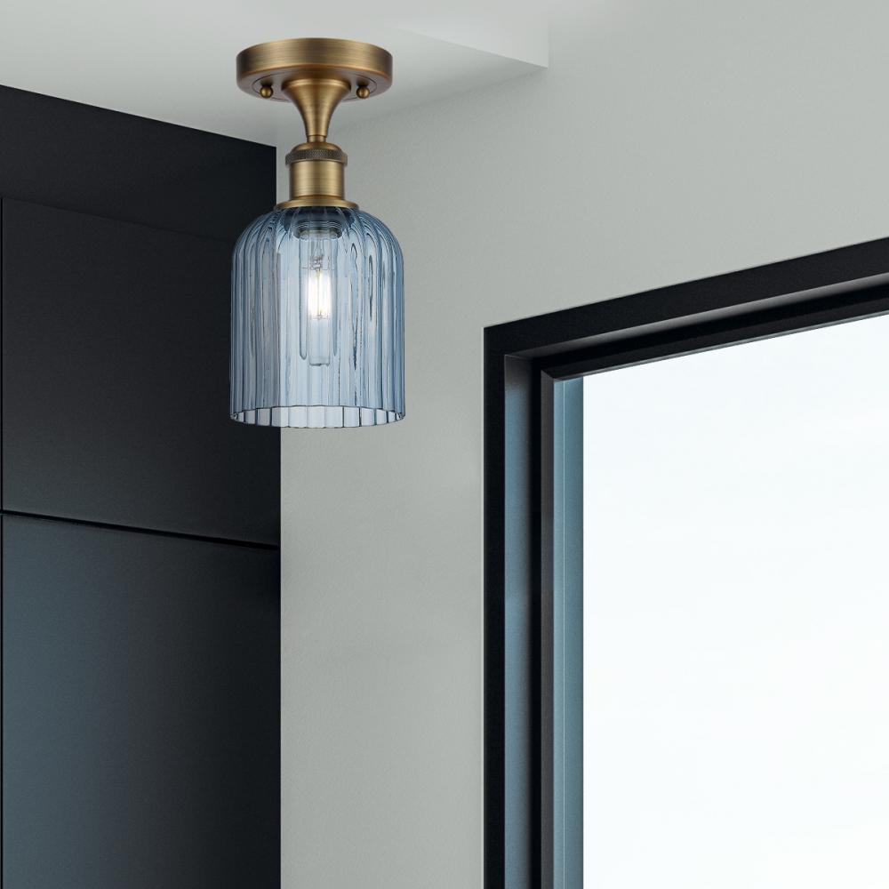 Bridal Veil - 1 Light - 5 inch - Brushed Brass - Princess Blue Shade - Semi-Flush Mount