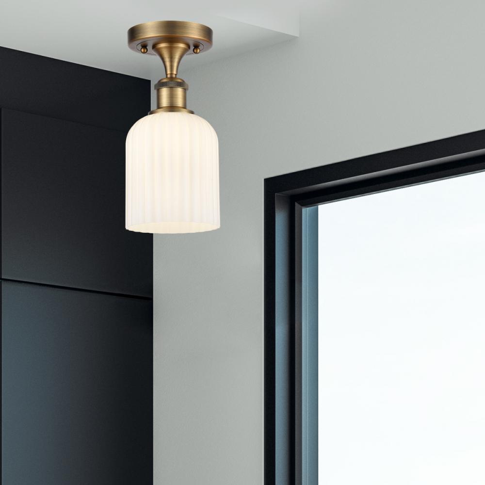 Bridal Veil - 1 Light - 5 inch - Brushed Brass - Gloss White Shade - Semi-Flush Mount