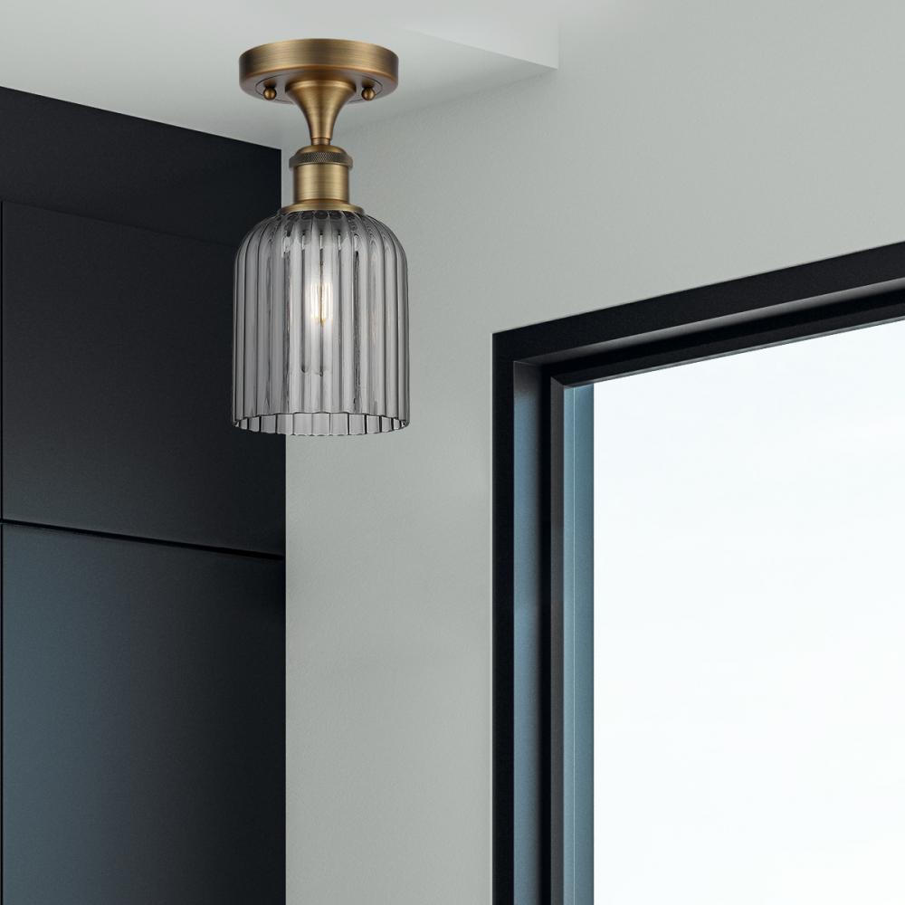 Bridal Veil - 1 Light - 5 inch - Brushed Brass - Light Smoke Shade - Semi-Flush Mount