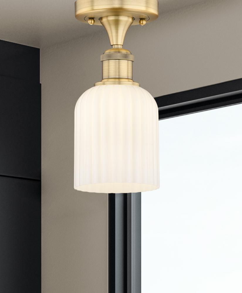 Bridal Veil - 1 Light - 5 inch - Brushed Brass - Gloss White Shade - Semi-Flush Mount