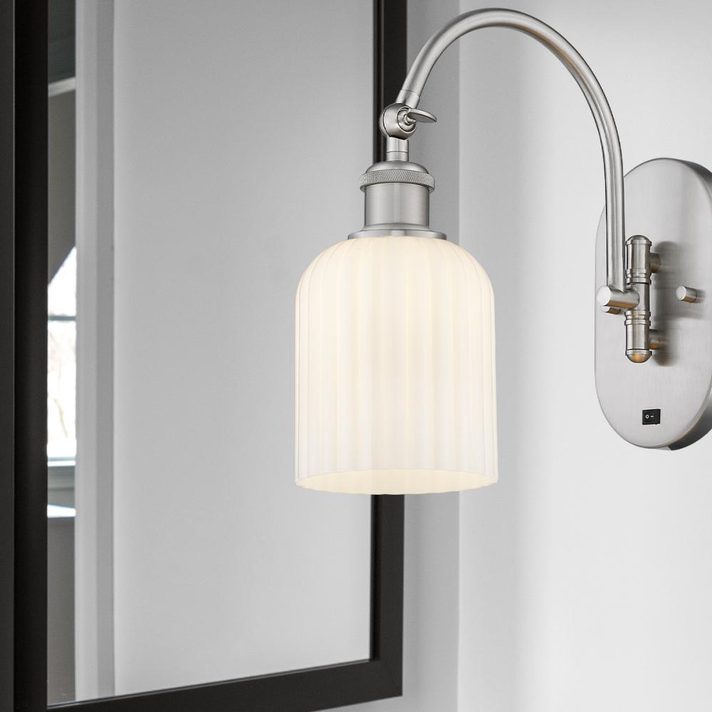 Bridal Veil - 1 Light - 5 inch - Brushed Satin Nickel - Gloss White Shade - Adjustable Swing Arm
