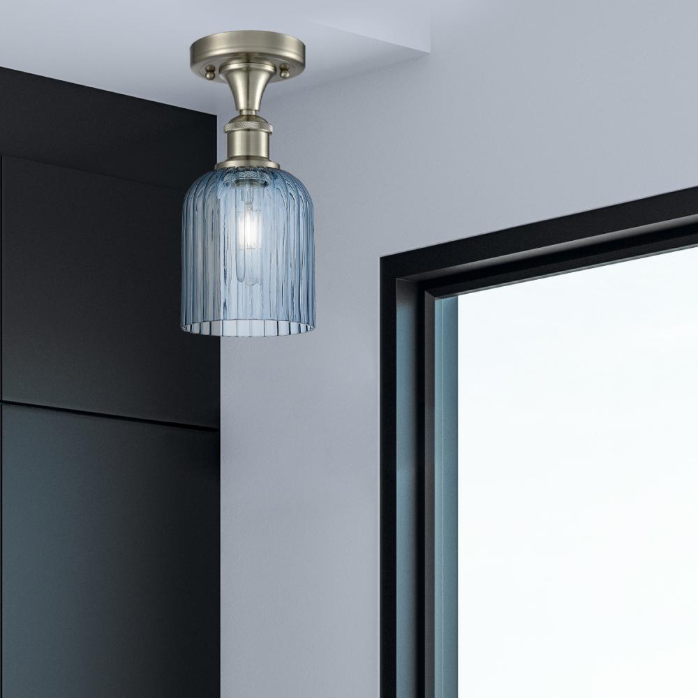 Bridal Veil - 1 Light - 5 inch - Brushed Satin Nickel - Princess Blue Shade - Semi-Flush Mount