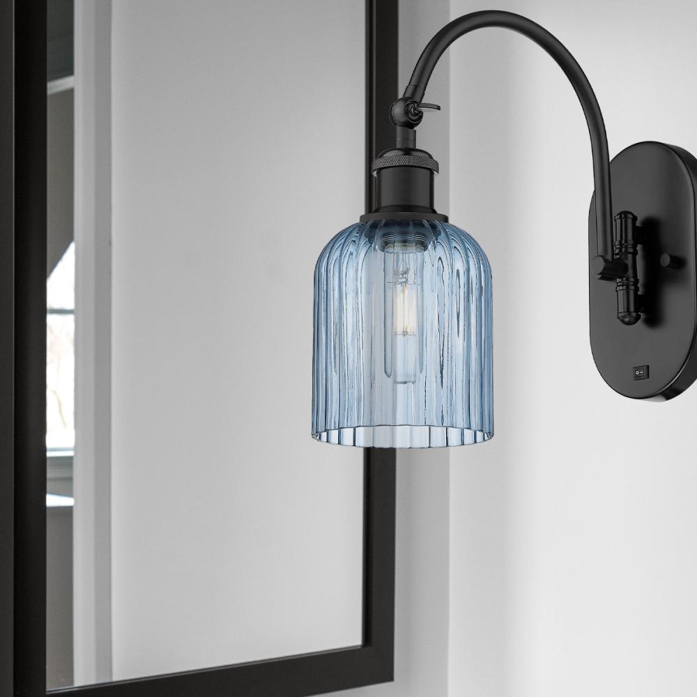 Bridal Veil - 1 Light - 5 inch - Matte Black - Princess Blue Shade - Adjustable Swing Arm