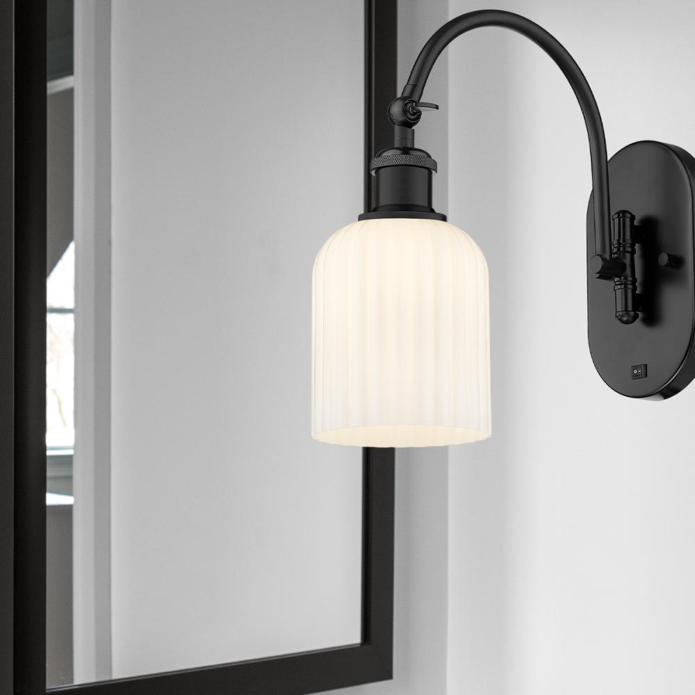 Bridal Veil - 1 Light - 5 inch - Matte Black - Gloss White Shade - Adjustable Swing Arm