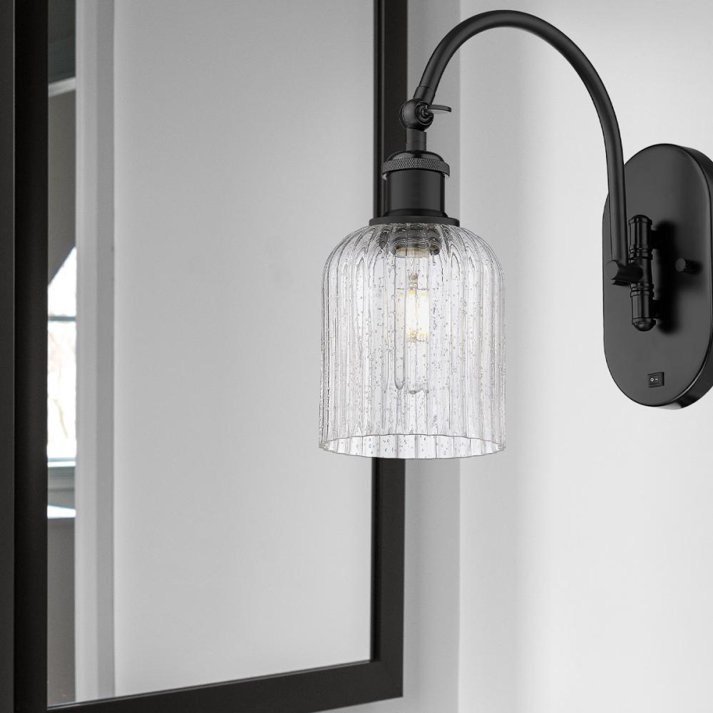 Bridal Veil - 1 Light - 5 inch - Matte Black - Seedy Shade - Adjustable Swing Arm