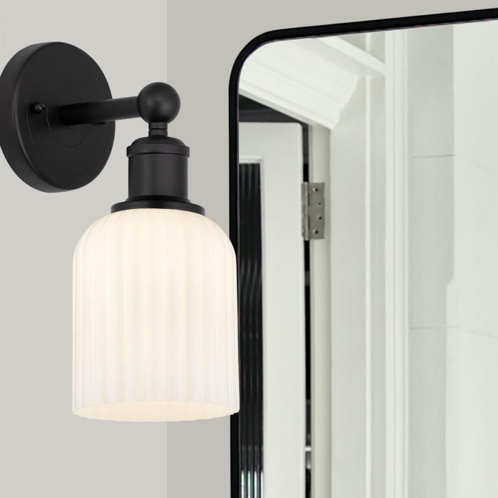 Bridal Veil - 1 Light - 5 inch - Matte Black - Gloss White Shade - Sconce