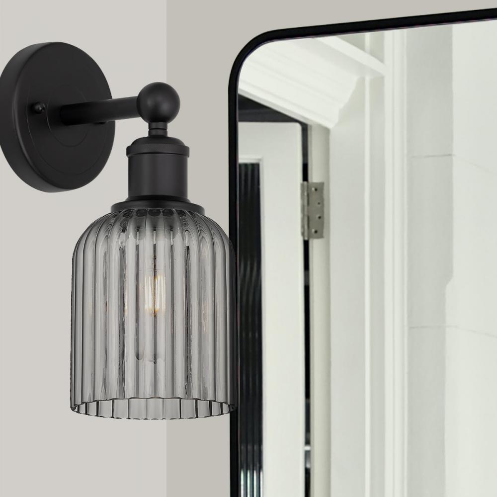 Bridal Veil - 1 Light - 5 inch - Matte Black - Light Smoke Shade - Sconce
