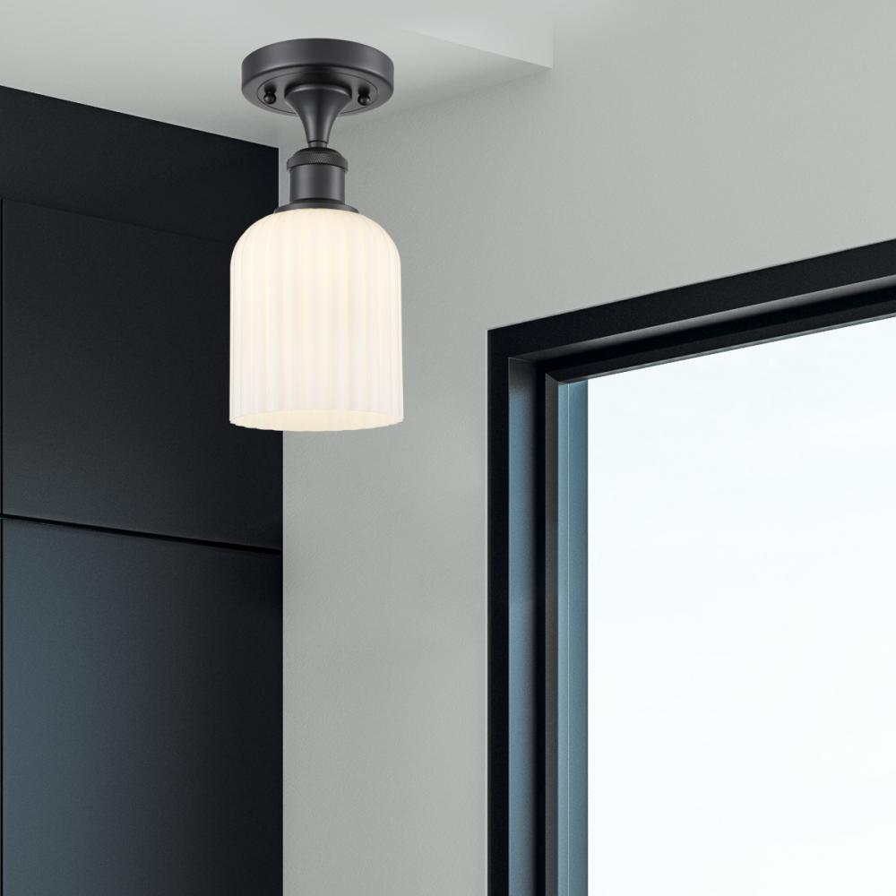 Bridal Veil - 1 Light - 5 inch - Matte Black - Gloss White Shade - Semi-Flush Mount