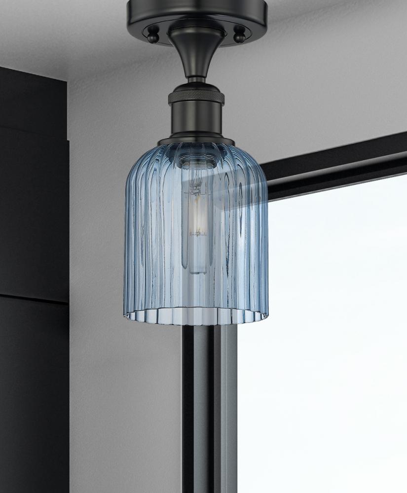 Bridal Veil - 1 Light - 5 inch - Matte Black - Princess Blue Shade - Semi-Flush Mount