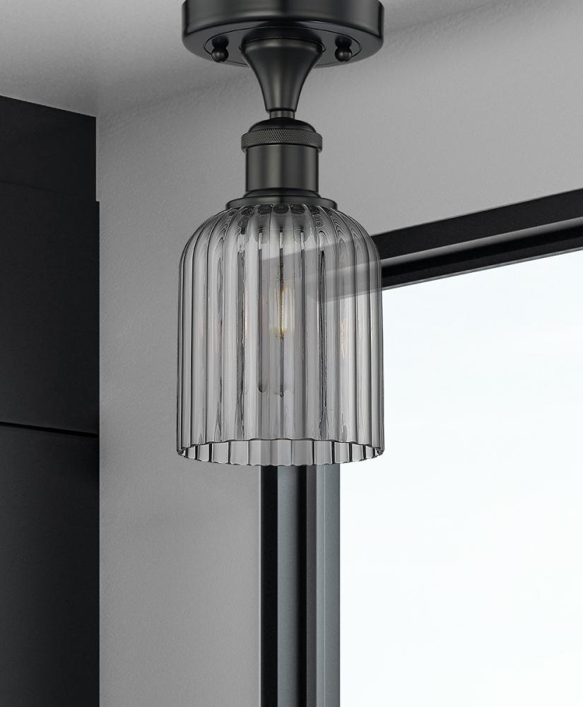 Bridal Veil - 1 Light - 5 inch - Matte Black - Light Smoke Shade - Semi-Flush Mount