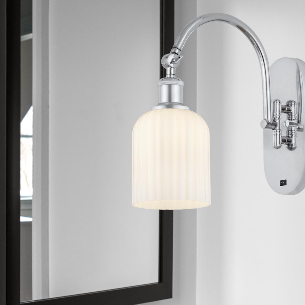 Bridal Veil - 1 Light - 5 inch - Polished Chrome - Gloss White Shade - Adjustable Swing Arm
