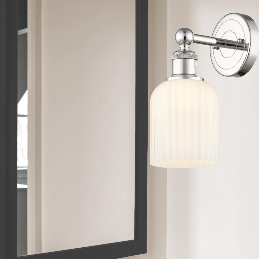 Bridal Veil - 1 Light - 5 inch - Polished Nickel - Gloss White Shade - Sconce