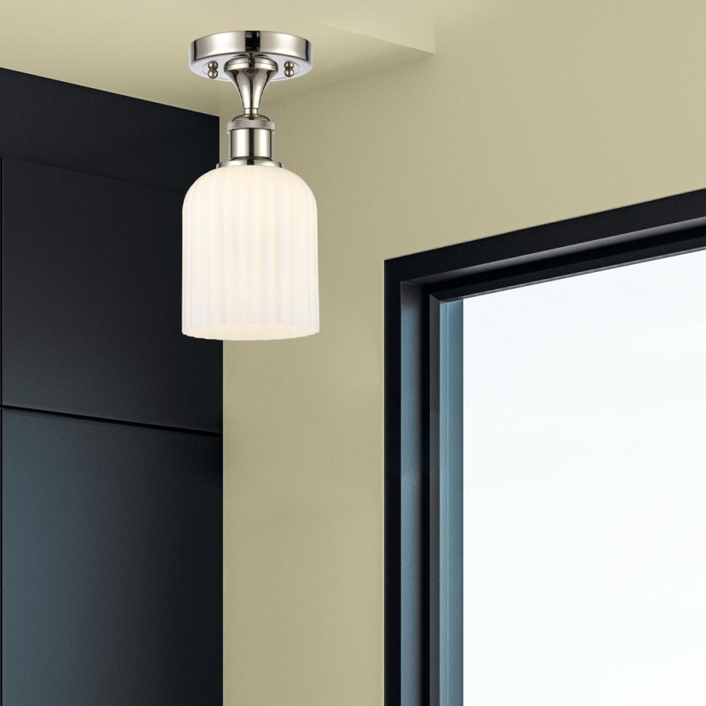 Bridal Veil - 1 Light - 5 inch - Polished Nickel - Gloss White Shade - Semi-Flush Mount