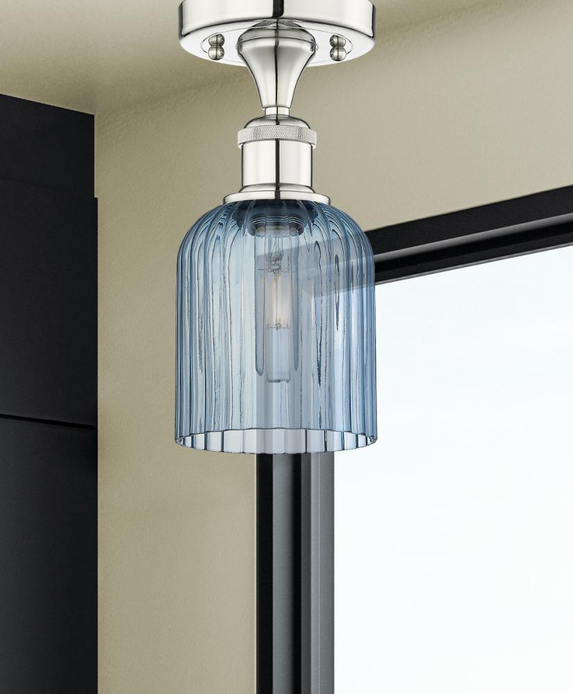 Bridal Veil - 1 Light - 5 inch - Polished Nickel - Princess Blue Shade - Semi-Flush Mount