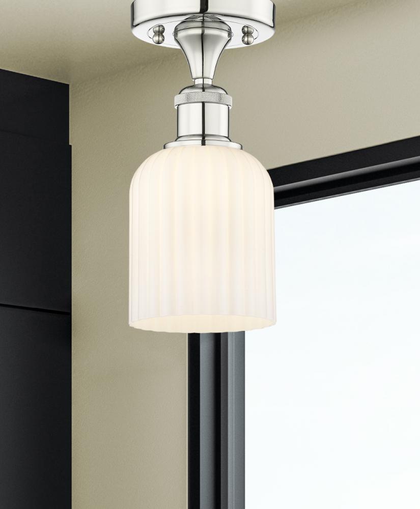 Bridal Veil - 1 Light - 5 inch - Polished Nickel - Gloss White Shade - Semi-Flush Mount